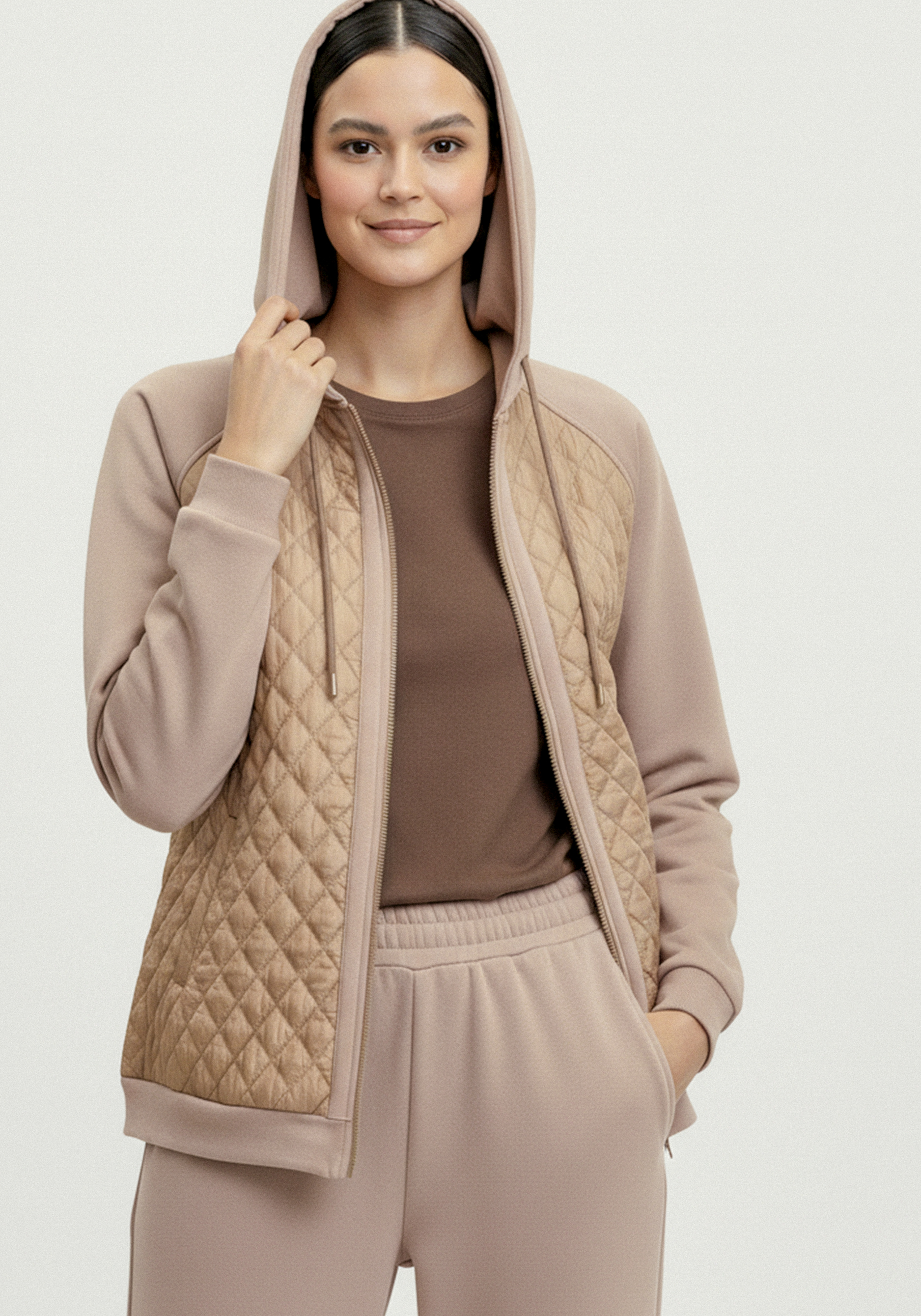 Бомбер с капюшоном из комбинированной ткани